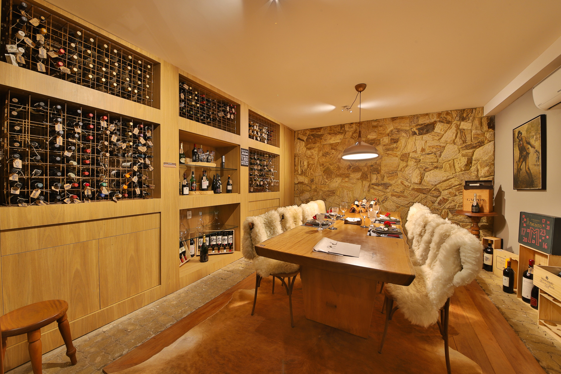 Adega elaborada com a curadoria da Grand Crú e uma das melhores cartas de vinhos do mundo.Climatizada com 250 rótulos de vinhos e 850 garrafas com edições limitadas, entre outras raridades do universo dos vinhos.