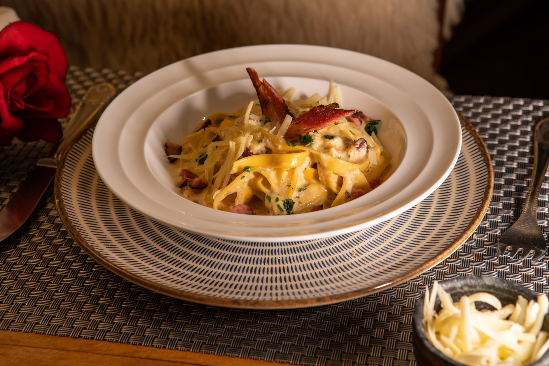 Menus personalizados inspirados nas preferências de cada hóspede. Gastronomia autoral do Chef que utiliza ingredientes frescos e até alguns “secretos", satisfazendo o paladar dos hóspedes mais exigentes.