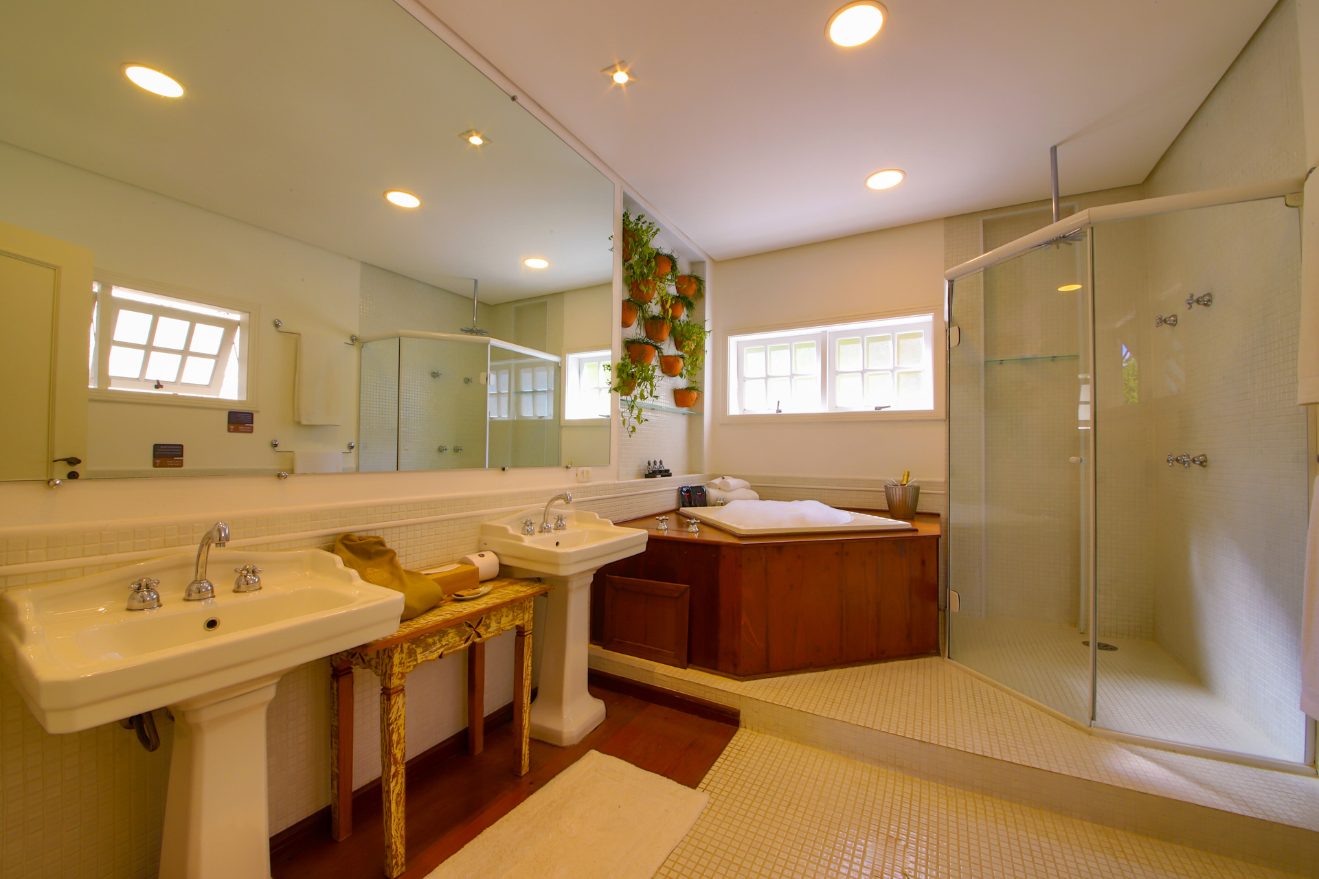 Um amplo banheiro com jacuzzi, closet privativo e lareira tornam o apartamento ainda mais aconchegante, ideal para casais que desejam privacidade e exclusividade em meio a Serra da Mantiqueira. A ampla sacada da suíte com vista frontal para o jardim do hotel, é um convite a viver experiências singulares, possibilitando momentos gastronômicos inesquecíveis elaborados pelo Chef e harmonizados com a carta de vinhos e drinks da nossa Adega e bar Secreto, com curadoria da Grand Cru.