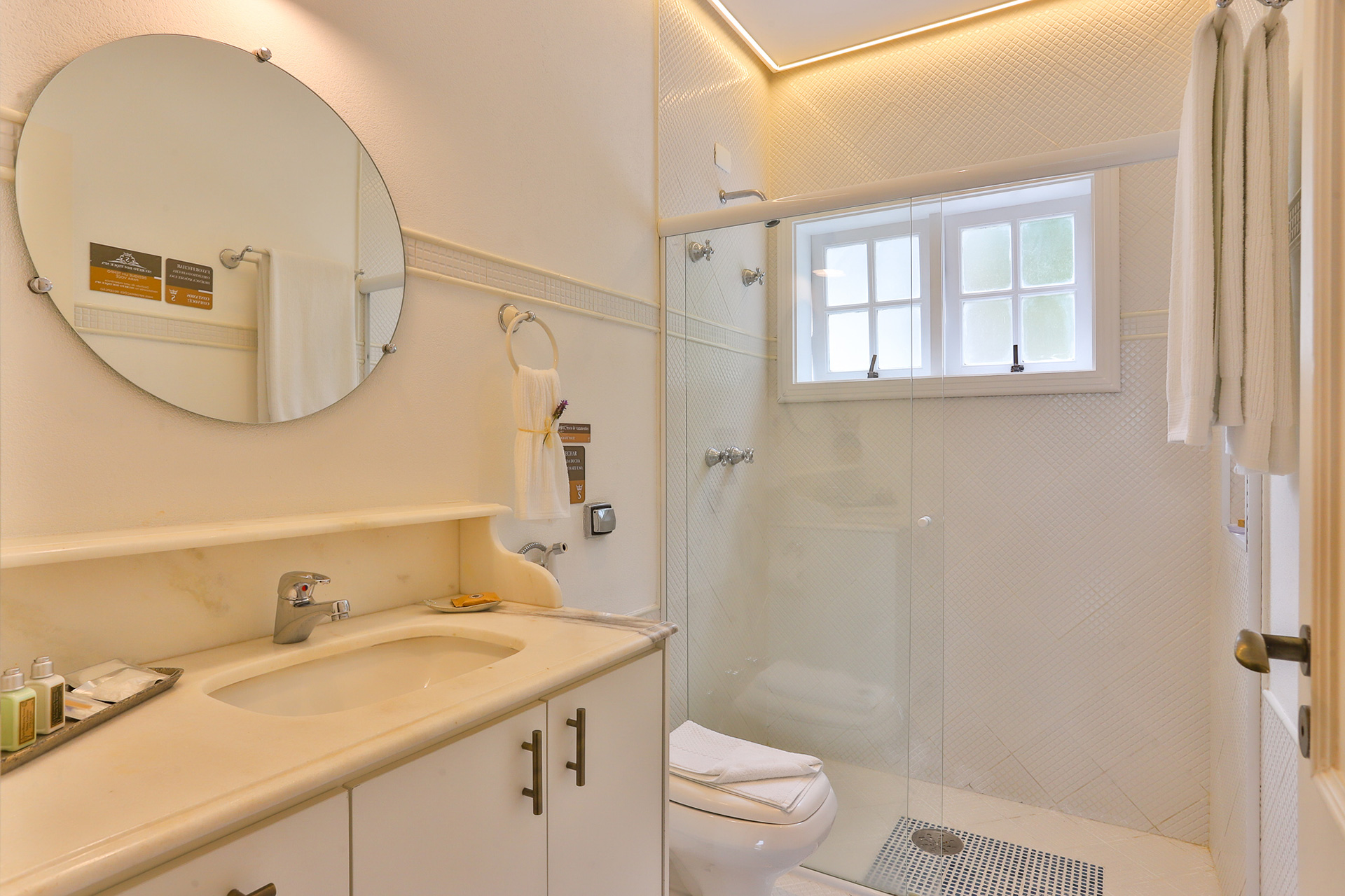 A cama Queen Size com enxoval de 400 fios, pode acomodar confortavelmente tanto casais quanto solteiros. O lustre em ferro sobre a cama coroa este cenário encantador, marcado pela beleza em cada detalhe. O banheiro com tampo em mármore e os amenities L’Occitane dão o toque final neste encanto de suíte. Para descontração, a suíte possui assistente virtual Alexa, tv a cabo e mini bar.